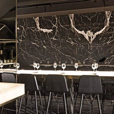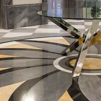 Grâce à notre parc de machines de pointe et à notre département technique, nous réalisons tous types de travaux sur mesure, en utilisant les mouvements de la pierre naturelle pour créer des dessins dans la conception même.